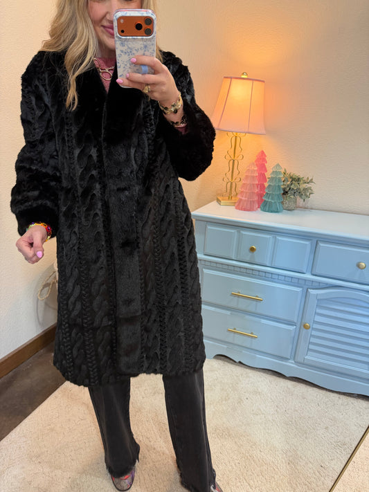 Black Full Sleeve Fuzzy Fur Coat Long Length