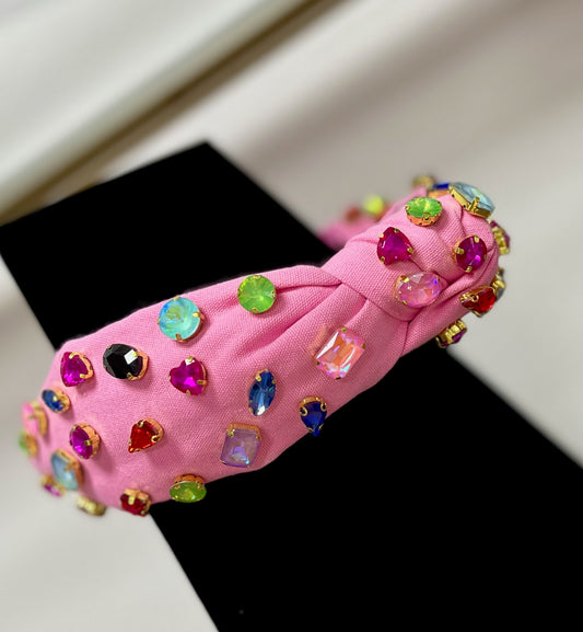 Pink Multi Colored Jeweled Headband