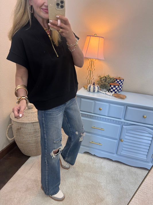 Black Scuba Ribbed 1/2 Zip High Neck Top