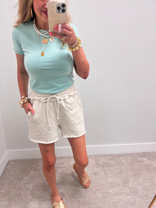 Turquoise Fitted Mineral Wash Cap Sleeve Top