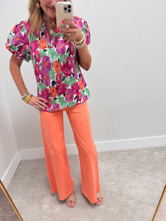 Vibrant Floral V Neck Top