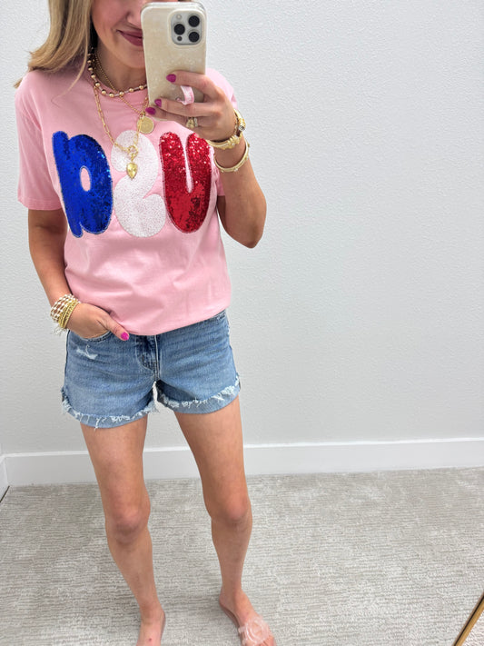 USA Sequin Appliqué Stitched Short Sleeve