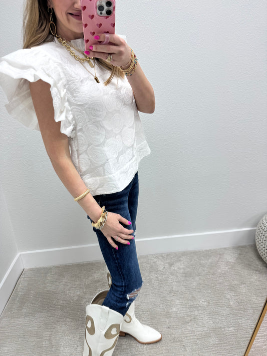 White Embossed Puff Sleeve Top RESTOCK PRE ORDER