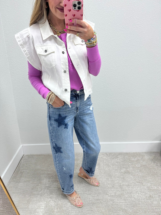 White Embossed Puff Sleeve Top RESTOCK PRE ORDER