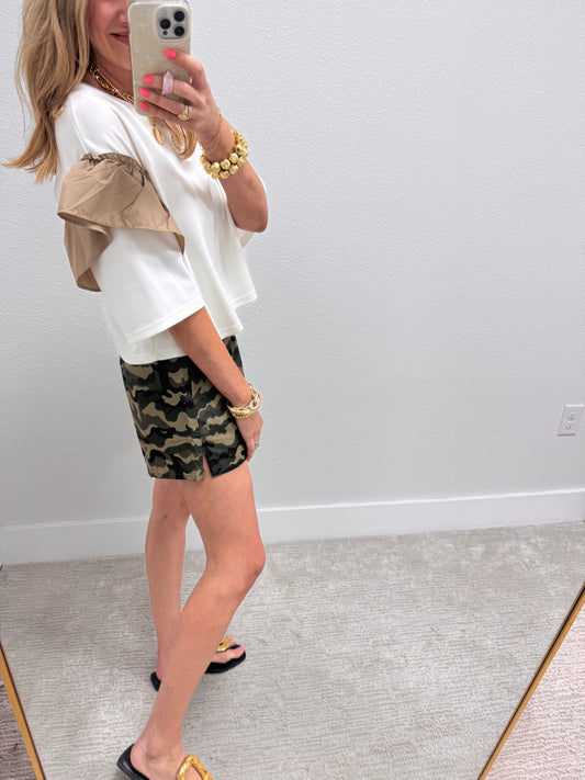 White High Rise Gold Front Button Skort FS