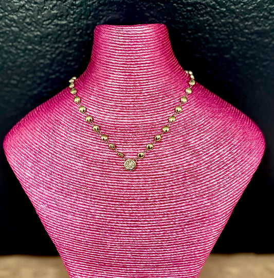 Beaded Gold Ball Magnetic Necklace (Black and Clear)