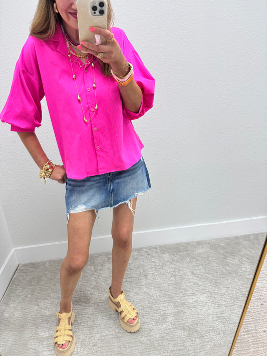 Hot Pink Windbreaker 3/4 Sleeve Top