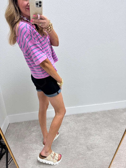 Lavender Ribbed Band Bottom Half Sleeve Top FS