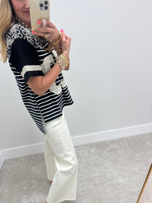 Black Embroidered Detail Number Patch Short Sleeve
