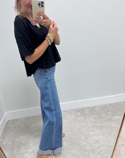 Black Cropped Round Hem Shirt