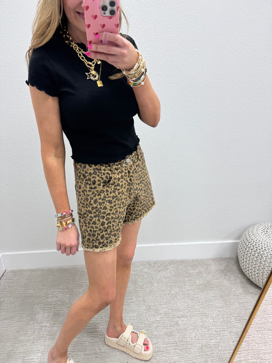 Black Cotton Lettuce Trim Crop Short Sleeve FS