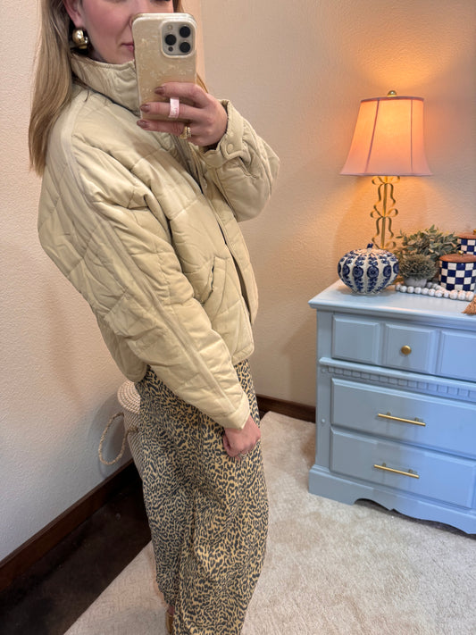 Oatmeal & Mustard Color Block Quarter Snap Button Sweatshirt