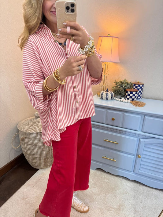 Red Risen Scarlet High Rise Tummy Control Crop Jeans