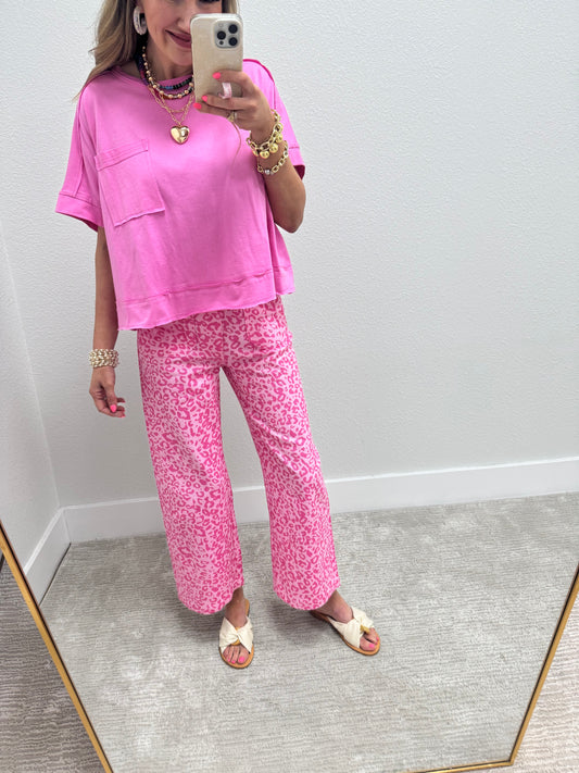 Pink Leopard Ankle Cropped Summer Pants