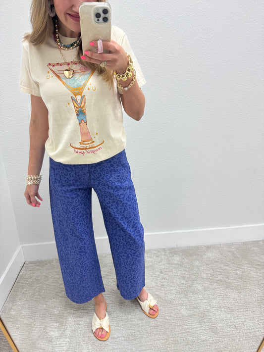 Blue Leopard Ankle Cropped Summer Pants