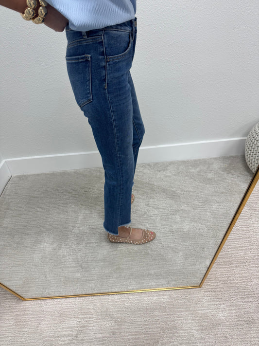 High Rise Side Panel Straight Leg Jean Medium Wash