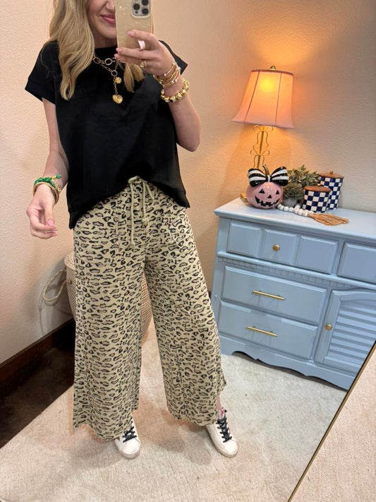Faded Olive Animal Print Mineral Washed Terry Knit Pants