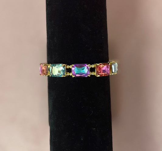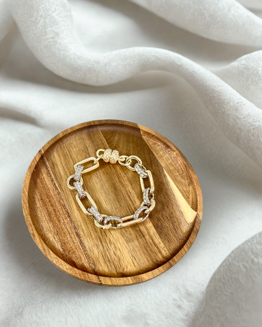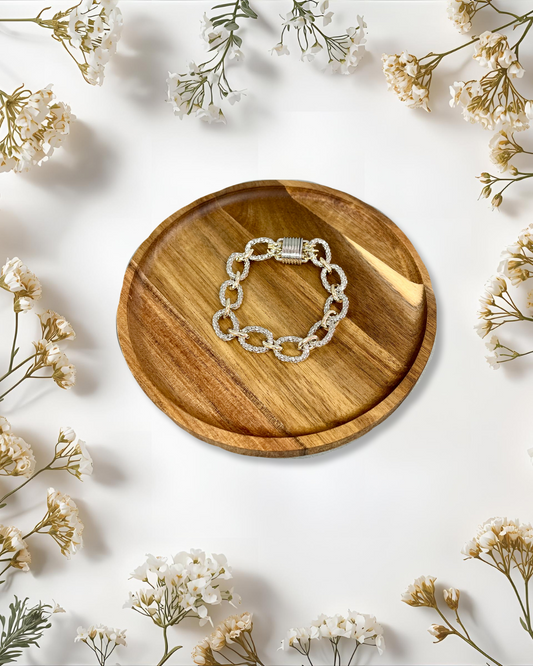 Cushion Square Stone Link Evening Bracelet- Clear White