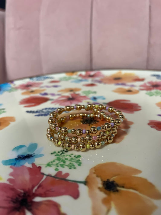 Set of 3 Pastel and Gold Bead Bracelet