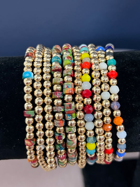 Set of 2 Gold and Colored Wood Bead Bracelet Set (3 colors!)