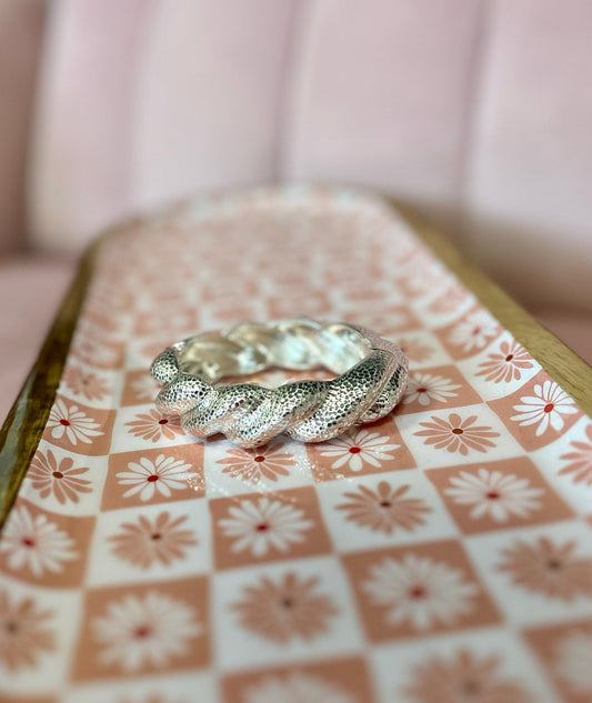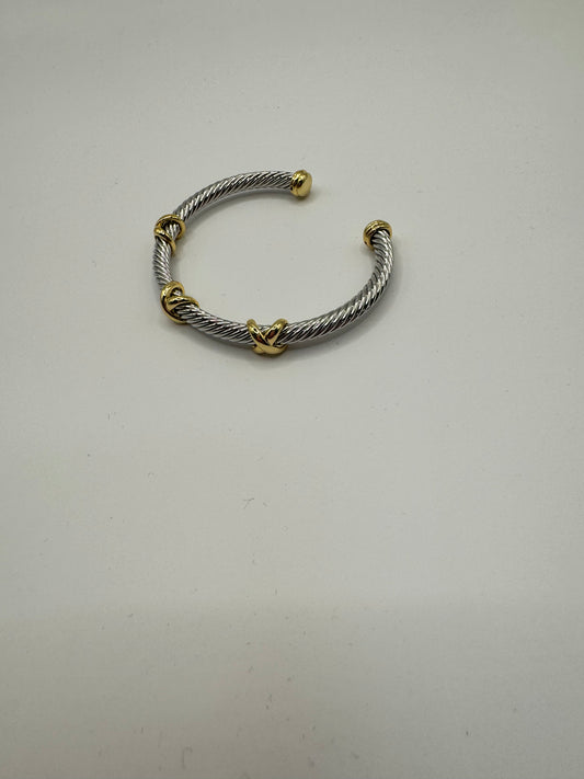 Textured Ribbed Chunky Bangle Bracelet (silver and gold)