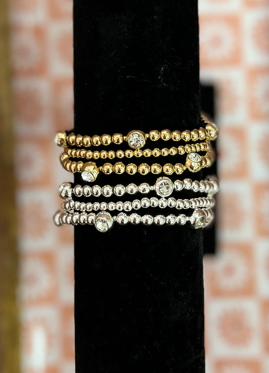 Textured Bead Set of 7 Bracelet (Silver and Gold)