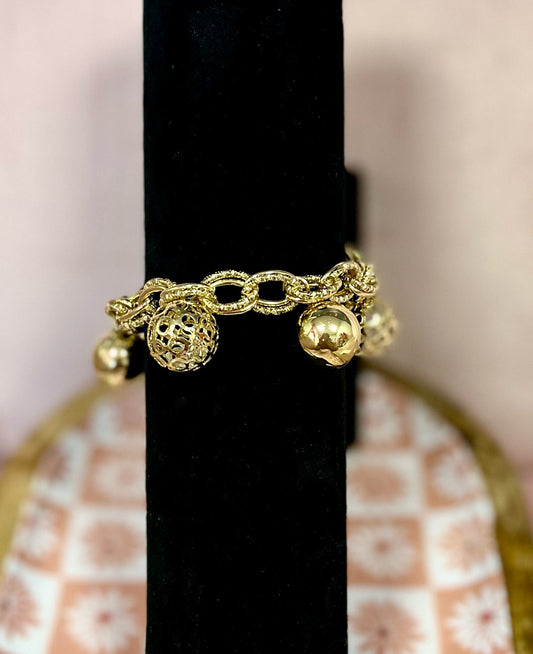 Gold Link Ball Charm Bracelet