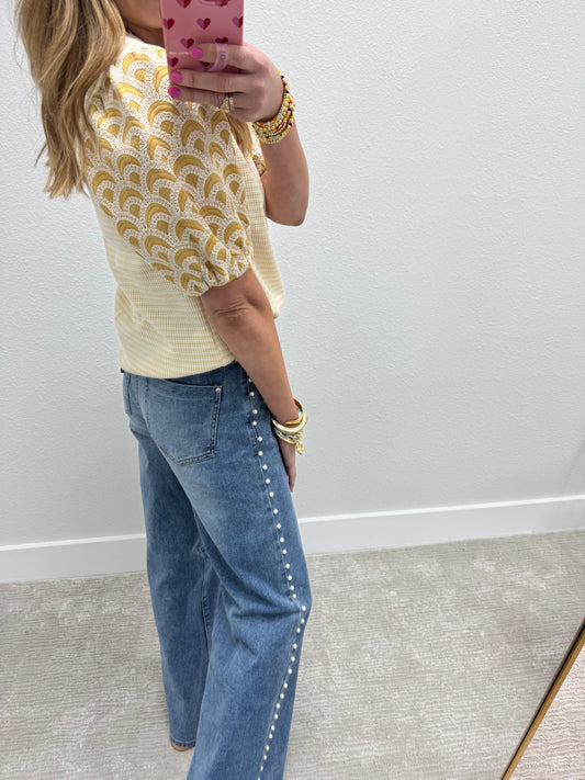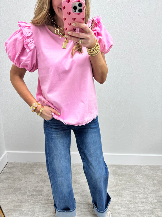 Light Pink Eyelet Ruffle Puff Sleeve Top FS