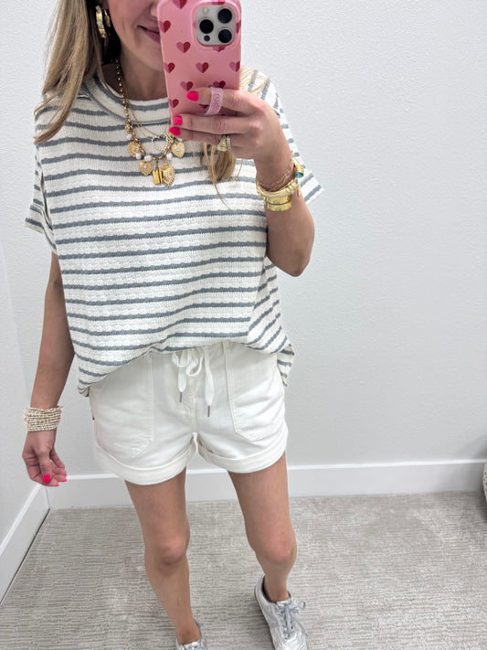 Blue Grey Stripe Jacquard Round Neck Box Tee FS