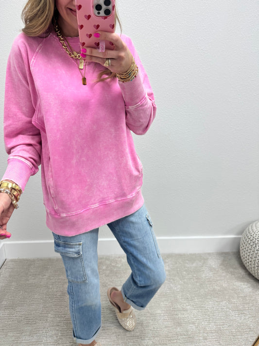 Candy Pink Ribbed Side Pull Over FS