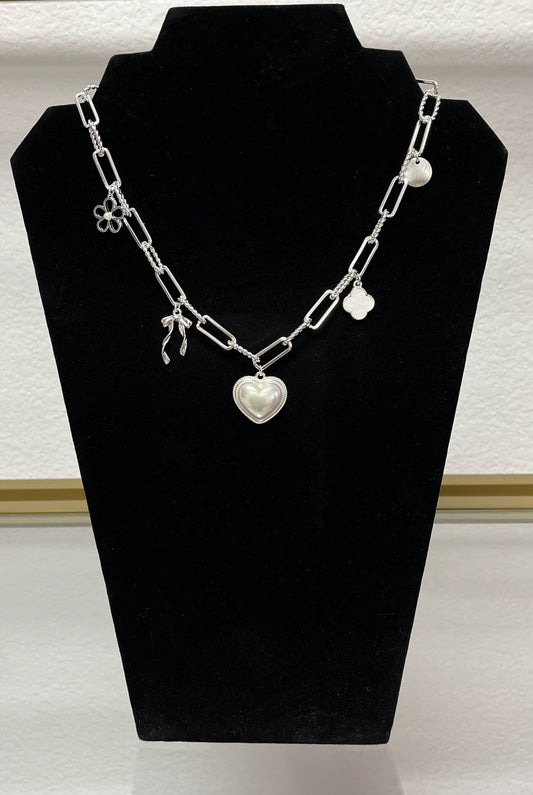 Pearl Heart Charm Necklace (silver and gold) FS