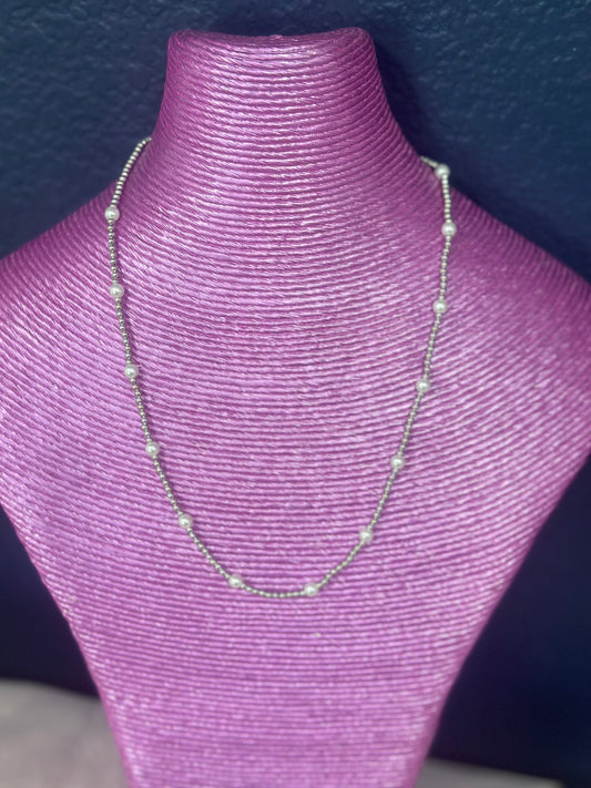 Gold and Silver Bead Necklace With Pearls FS