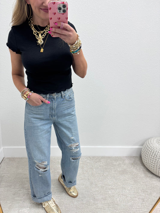 Distressed High Rise Vintage Wide Leg Jeans FS