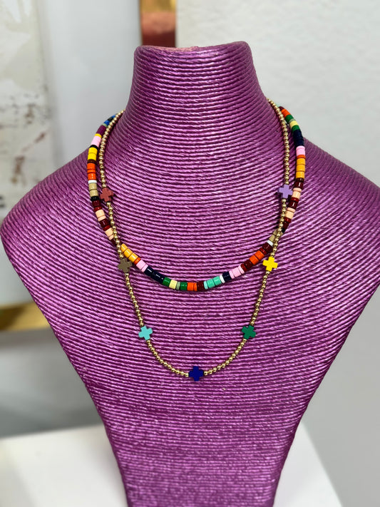 Gold Mother of Pearl Diamond Flower Style Necklace FS
