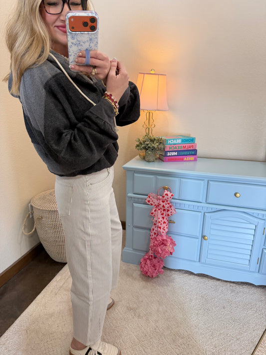 Charcoal Contrasting Elastic Waist Stitch Detail Hoodie