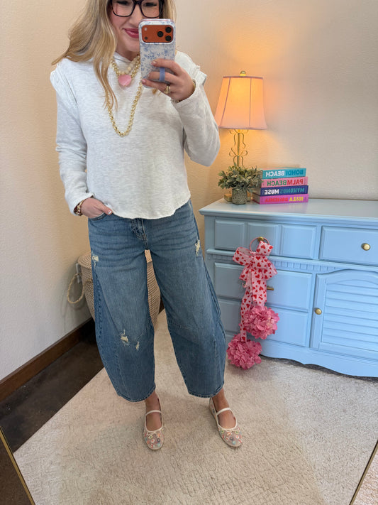 Heather Gray Denim Collar Button Up Top