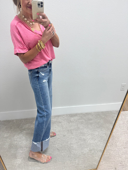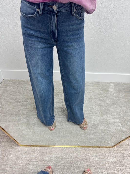 Risen Mid Rise Tummy Control Wide Leg Jeans FS