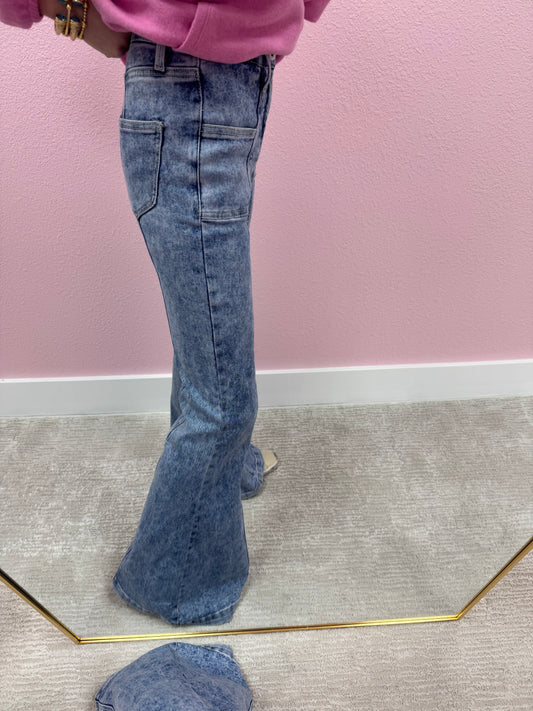 High Rise Mineral Wash Front Seam Bootcut Jeans FS