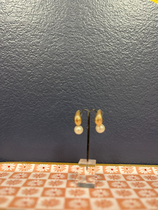 IP32 Teardrop Earring with Pearl Ball (Gold & Silver)