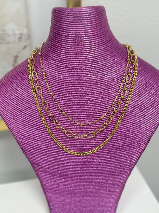Gold Three Strand Multi Clasp Necklace (2 different styles!)