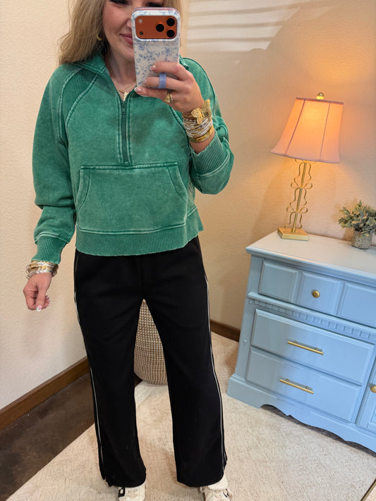 Green Acid Washed Half Zip Fleece Pullover