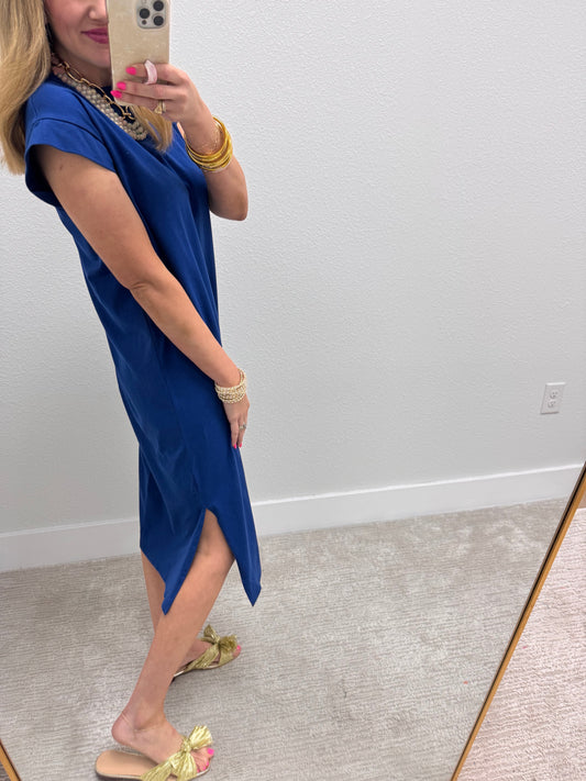 Blue Poplin Front Bow With Ric-Rac Trim Maxi Dress
