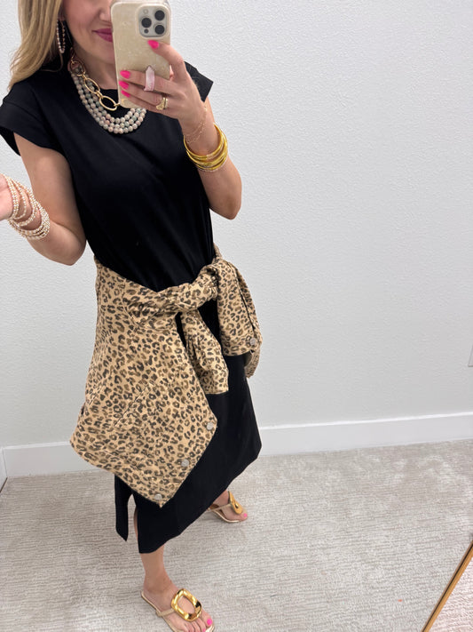 Black Puff Sleeve Button Down Maxi Dress with Ruffle Neck