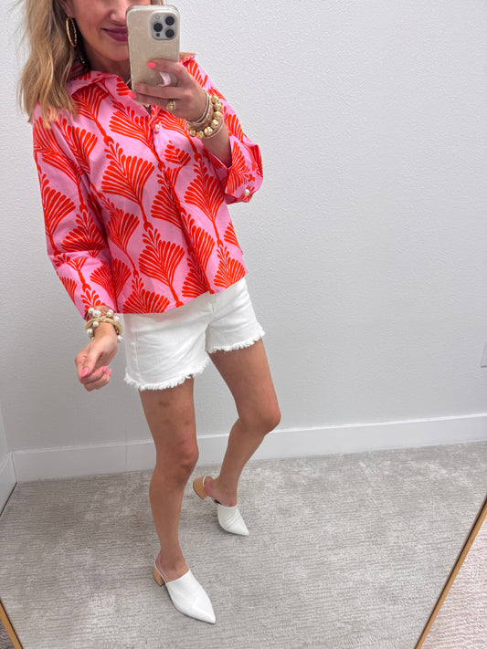 Orange Quarter Button Long Sleeve Top