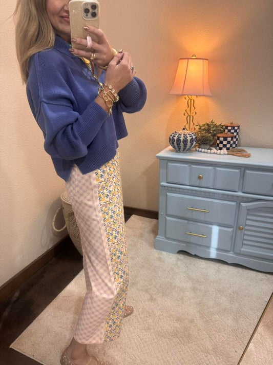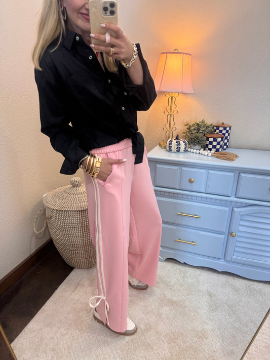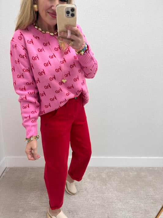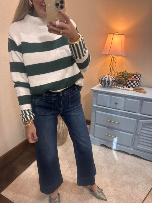 Evergreen/Pink Contrasting Striped Sweater with Polo Collar