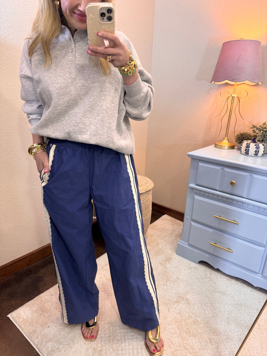 Heather Gray/Ocean Blue Contrasting Striped Sweater with Polo Collar