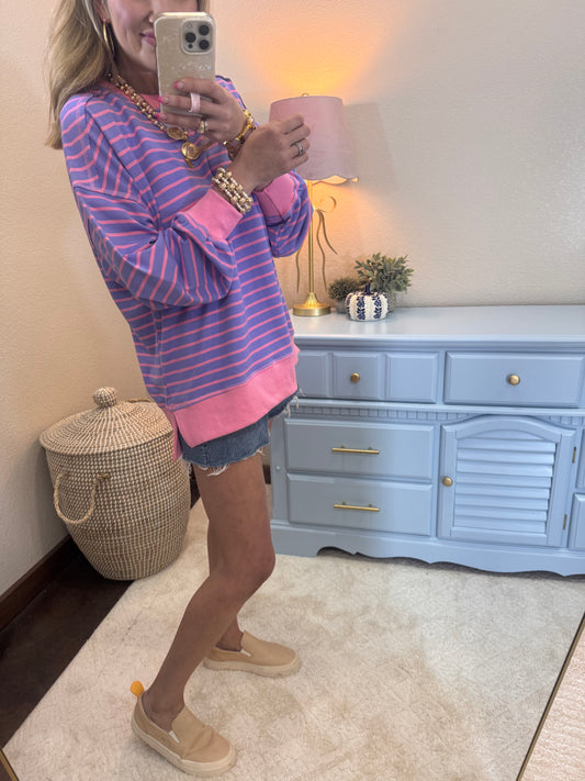 Lavender & Pink Stripe Oversized Pullover
