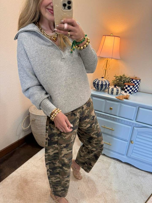 Grey Half Zip High Collared Pullover Sweater