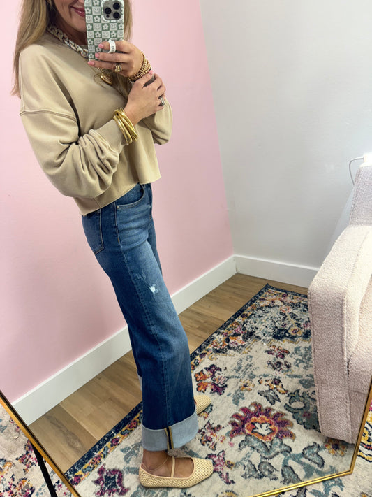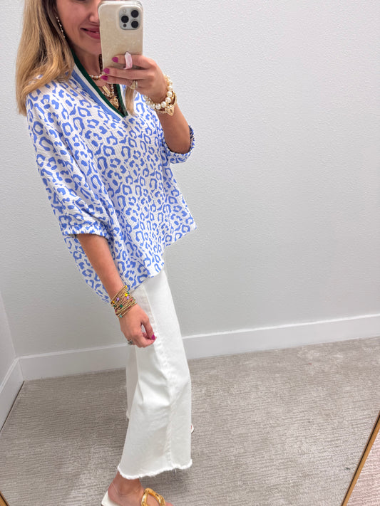 Dusty Blue & Cream Round Neck Contrast Trim Sweater