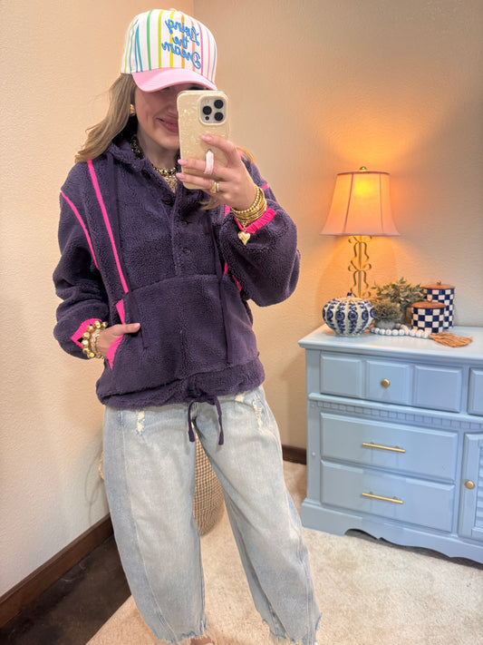 Purple & Neon Pink Sherpa Buttoned Hoodie